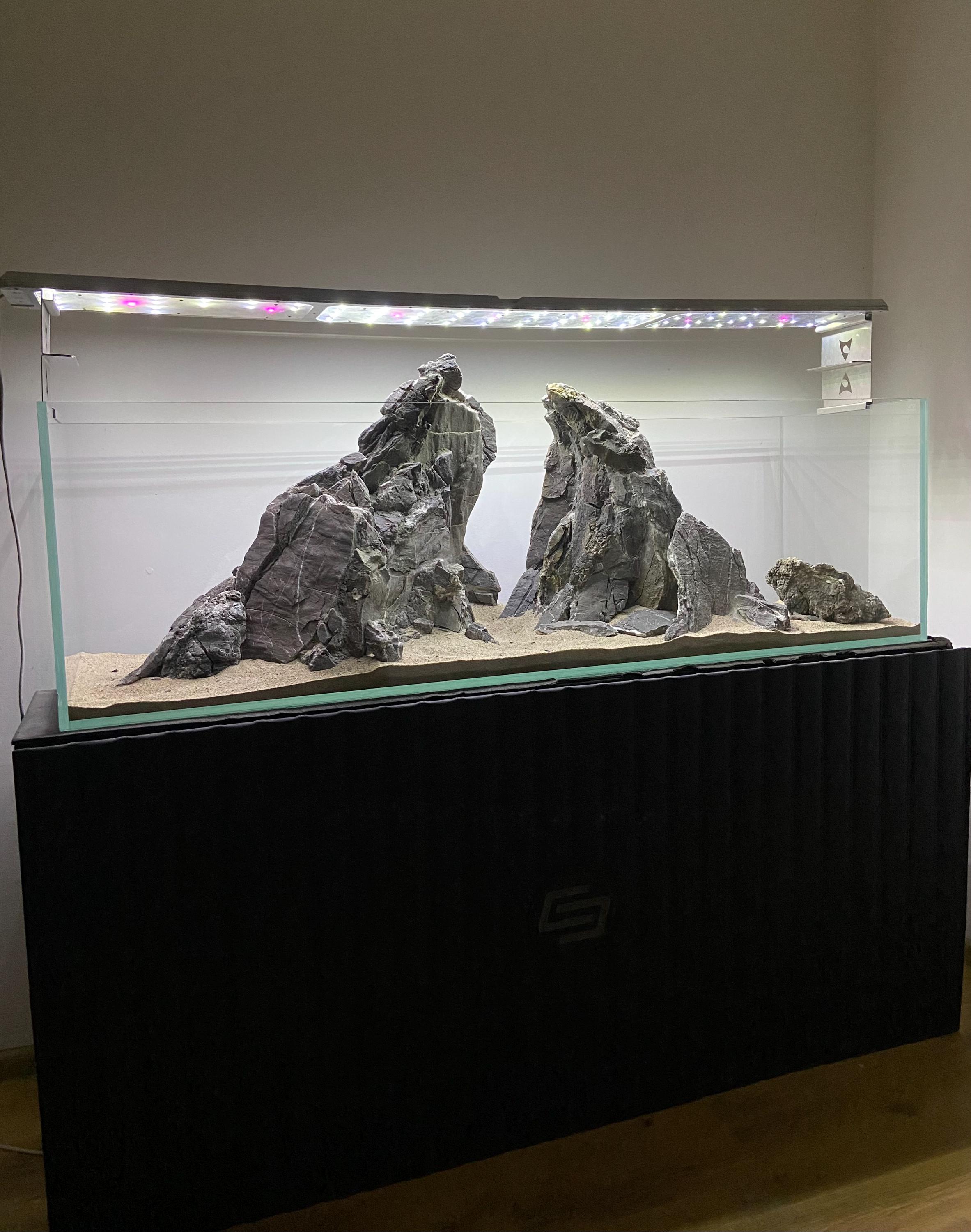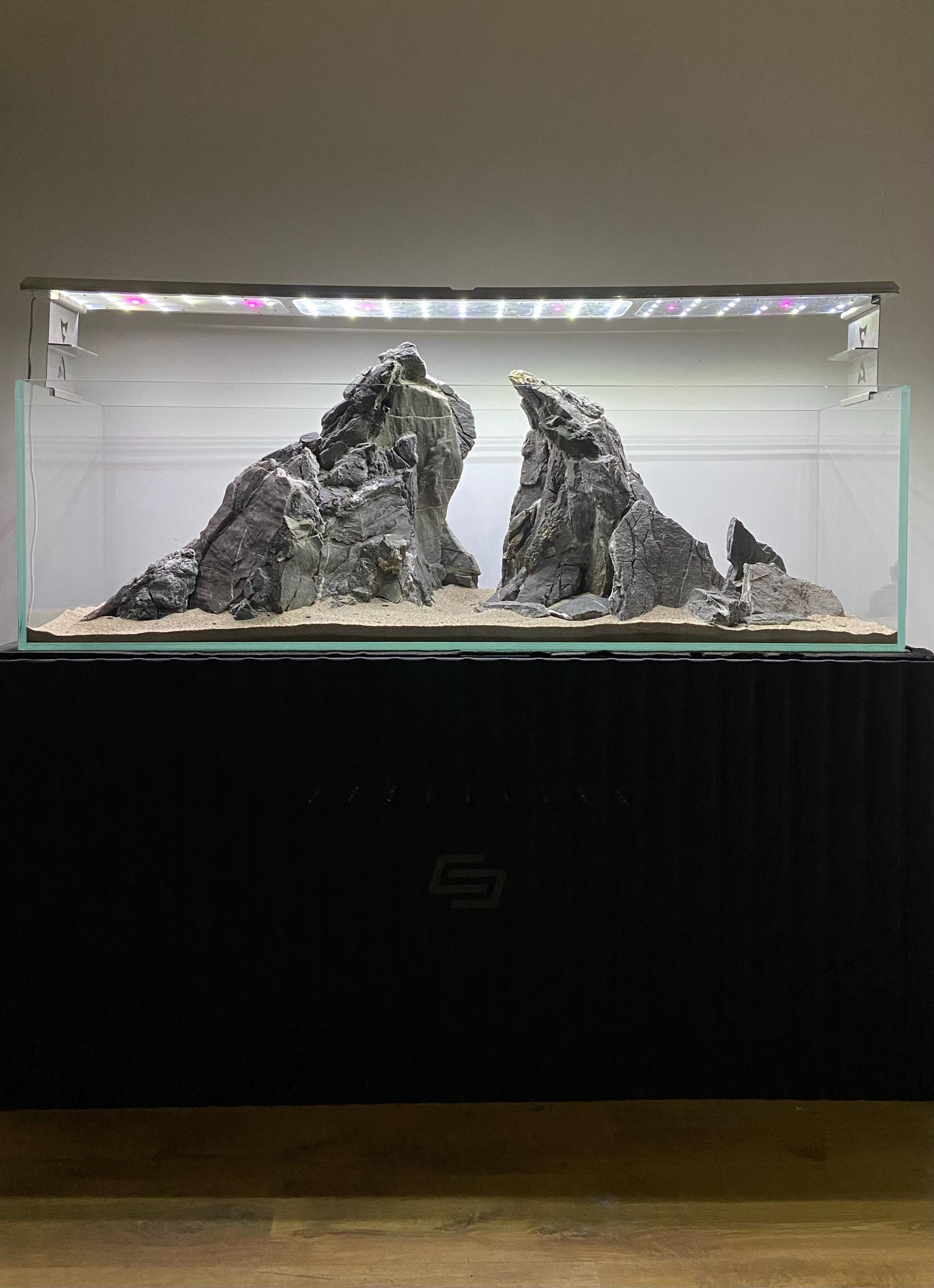 Bring the dramatic beauty of a mountain gorge into your aquarium with this handcrafted Malawi-style rock arrangement. Each layout is built from authentic natural stones such as Ancient Stone, carefully selected for their shape, color, and texture to create a realistic, long-lasting aquascape.